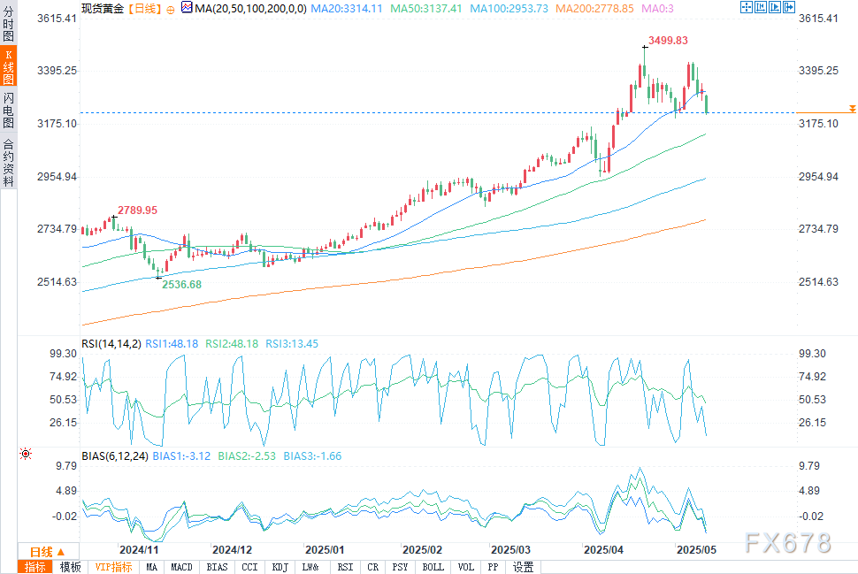 价格走势也表明可能会出现回调。或许价格可能会朝着3000美元水平移动。