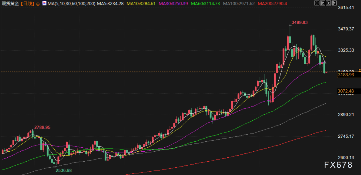 City Index 和 FOREX.com 的市场分析师 Fawad Razaqzada 表示:“虽然长期趋势仍然看涨,但如果此轮看跌势头持续几天,我也不会感到惊讶。第一个下行目标价位是 3136 美元,接下来是 3073 美元,然后是 3000 美元大关。”