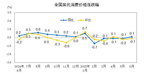2025年6月份居民消费价格同比上涨0.1%    2025年6月份,全国居民消费价格同比上...